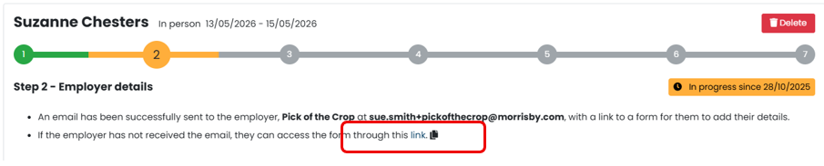 Email is sent to the employer – they complete the necessary information.